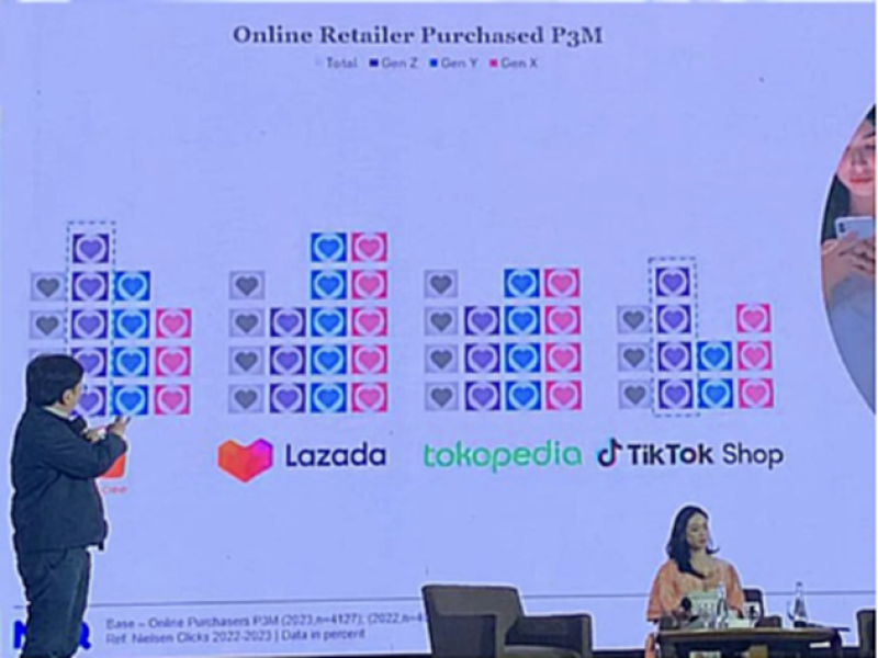 不久前,數據分析機構NielsenIQ印度尼西亞總監Rusdy Sumantri在一場電子商務博覽會上,展示了印尼各電商平臺的用戶年齡分布情況,其中Shopee有著最多的Z世代消費者,甚至超過TikTok Shop。