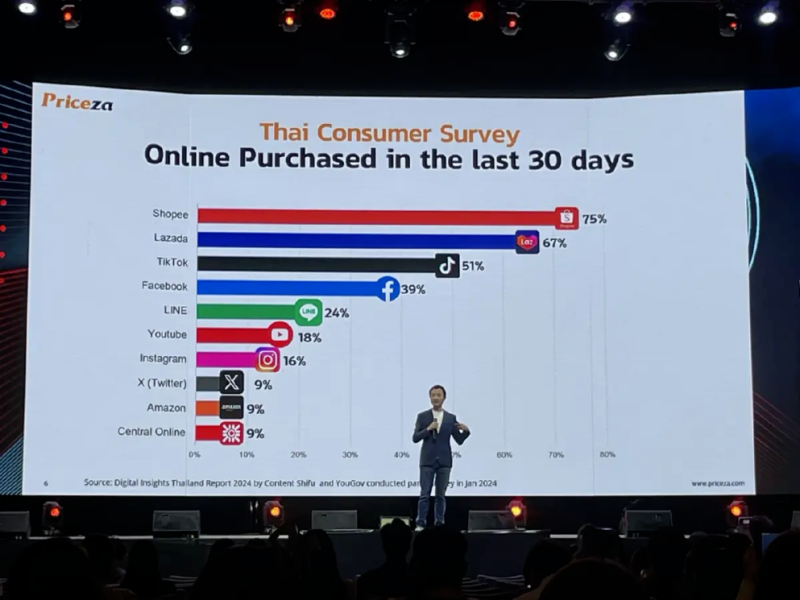 例如不久前,泰國比價網站Priceza首席執行官在DAAT DAY Advolution活動上表示,2027年,泰國將以1.6萬億泰銖,成為僅次于印尼的東南亞第二大電商市場,而在購物平臺的選擇上,超七成(75%)受訪者在過去一個月選擇在Shopee上購物。?