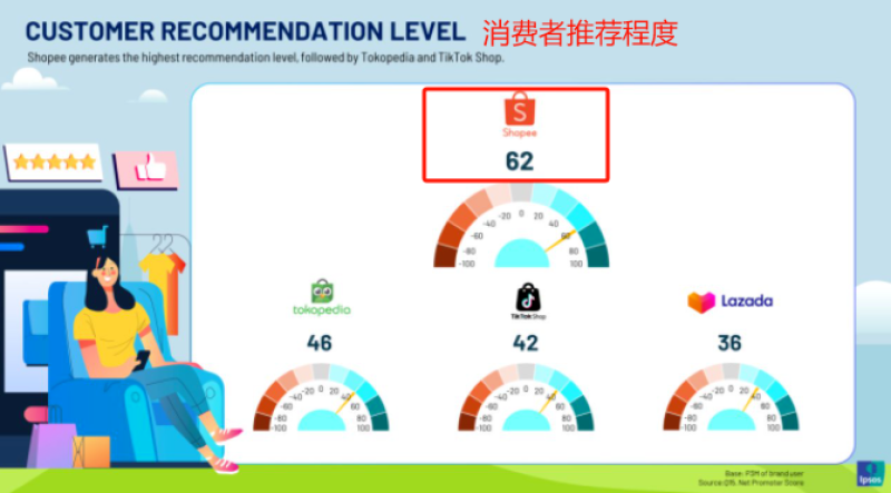 今年年中,IPSOS發布了一份印尼消費者對電商平臺滿意度的研究,數據顯示,印尼消費者對Shopee支付方式的多樣性、商品種類豐富、訂單交體系等方面都給出了極高的評價,高達62%的印尼消費者將其視作首選推薦的電商平臺。