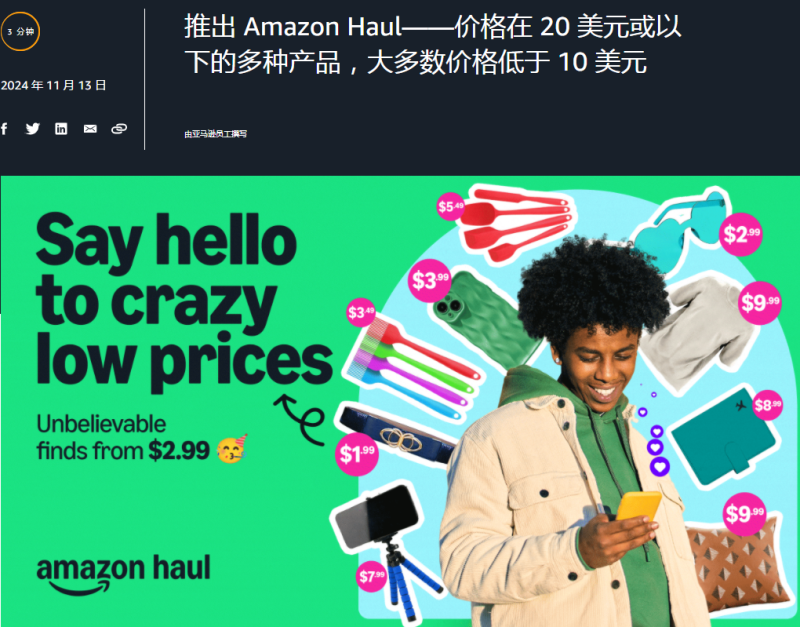 再加上亞馬遜等強勁對手的頻頻發力,Temu不得不加強警惕。亞馬遜近期推出的低價商城Amazon Haul便是對Temu的直接回應。Amazon Haul致力于提供價格優惠的商品,吸引大量注重性價比的消費者,無疑將加劇市場的價格競爭。面對這樣的市場環境,Temu需要不斷創新和優化策略,以保持其競爭優勢。