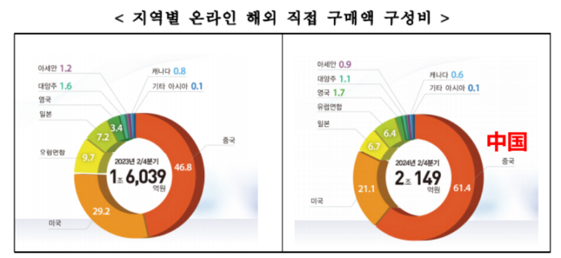 2024Q2中國商品交易額占比首超六成 圖源:kostat.go.kr