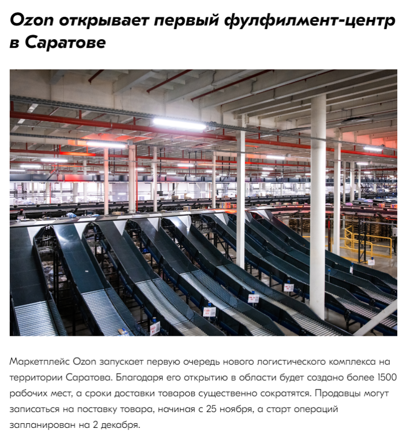 Ozon物流總監(jiān)Ruslan Eminov表示,這一項目是Ozon物流基礎(chǔ)設(shè)施擴展的一部分,旨在縮短賣家與買家之間的距離,優(yōu)化交貨速度。隨著新設(shè)施的啟用著,薩拉托夫及周邊地區(qū)的客戶將能夠在更短的時間內(nèi)收到訂單,最快達到一天,Ozon的物流網(wǎng)絡(luò)也將進一步覆蓋臨近地區(qū)更廣泛的市場。