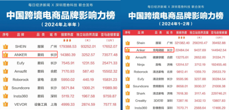 根據每日經濟新聞與深圳易勢科技聯合發布了《中國跨境電商品牌影響力榜》,可以看到,無論是單個季度、半年度還是全年度,安克創新都名列前茅,位居榜單第二的位置。雖然當前安克創新還未能趕超SHEIN摘得桂冠,但長期保持住老二的位置也是相當不簡單了。