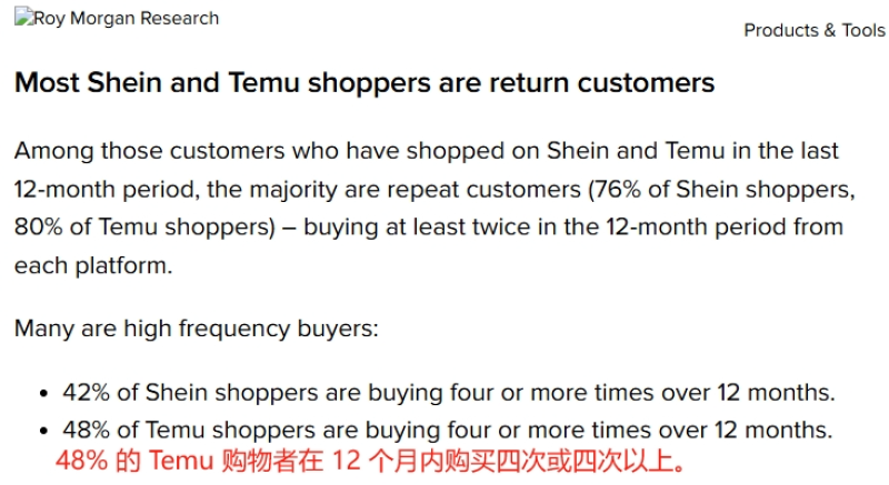 近半數(shù)Temu購(gòu)物者為回頭客 圖源:roymorgan