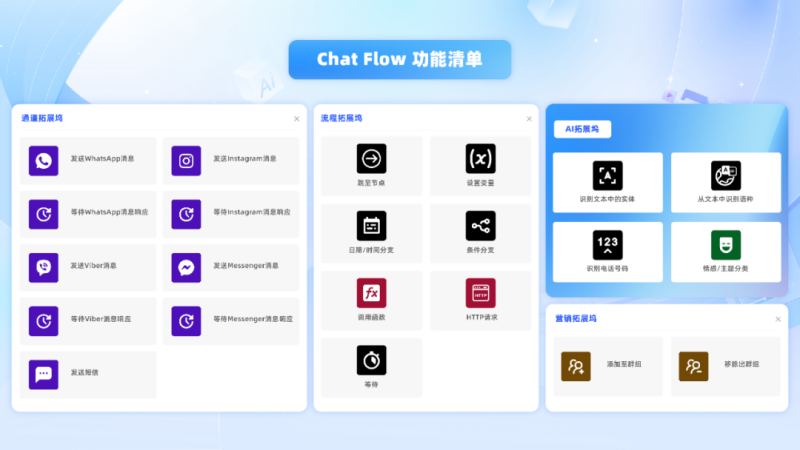 具體來看,組件包括通道拓展塢、流程拓展塢、AI 拓展塢、營銷拓展塢四大類: