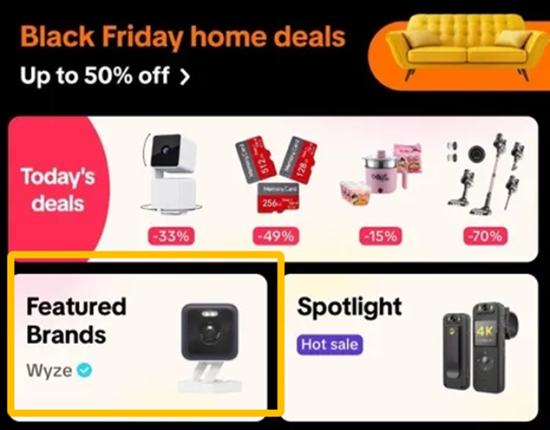 Wyze登上TikTok Shop黑五首頁 圖源:TikTok Shop