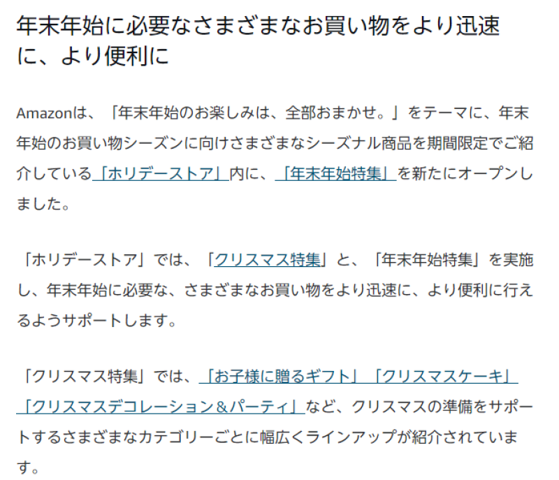 12月3日消息,亞馬遜日本在其“假日商店”新開設了“年終和新年特惠”版塊,為迎接年末和新年購物季,特別推出一系列季節(jié)性特惠商品。此次“年終新年特惠”活動涵蓋了五個主要主題:年末和新年的禮物;春季大掃除;福袋;年菜;新年裝飾品。