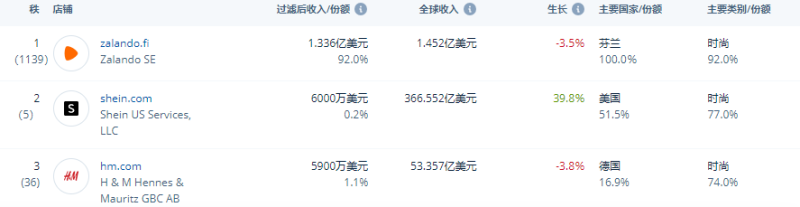 同樣,Shein在芬蘭市場也俘獲了不少消費者的心智。ECDB數(shù)據(jù)顯示,在芬蘭時尚領(lǐng)域,Shein是排名第二的網(wǎng)購平臺,市場收入大約6000萬美元,增長幅度約為40%,是排名前三平臺中唯一正增長的平臺。
