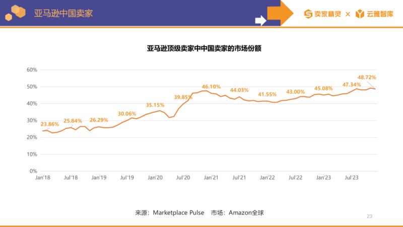 中國賣家在亞馬遜的市場份額持續(xù)攀升 圖源:賣家精靈