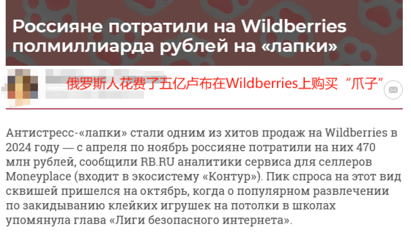 比如說解壓爪子玩具,也就是我們常說的“捏捏”,是今年Wildberries上最暢銷的商品之一。今年4月至11月期間,俄羅斯人在這類玩具上花費了4.7億盧布,其中10月份是銷售高峰期,共花費1.57億盧布,環比增加41%。