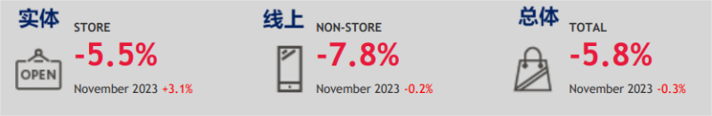 具體來看,線上銷售額下滑最為嚴重,達到7.8%,實體銷售額跌幅為5.5%。這其中,時尚行業受到的沖擊最重,與去年同期相比,銷售額下降8%。