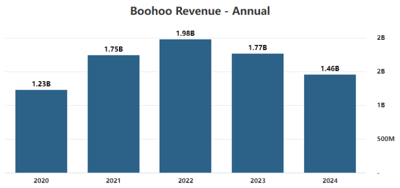 然而,由于生活成本上漲,消費者信心下降,線上零售市場的低迷氣氛也逐漸蔓延到了線上渠道。原本持續增長的Asos和Boohoo也從2023年開始,收入逐步下降。今年前三季度,Boohoo總營收6.198億英鎊,同比下滑29.76%。在截至2024年9月1日的財政年度中,Asos的年收入為29.1億英鎊,同比下降18.13%。