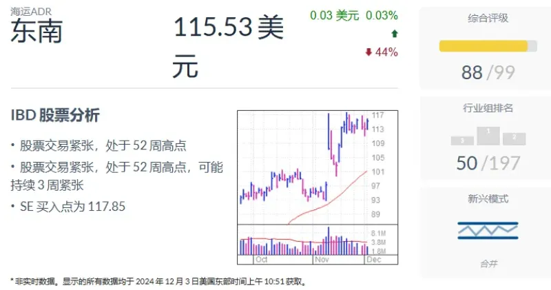 根據IBD MarketSurge圖表,Sea股價目前在52周高點117.85附近窄幅交易,盡管遠低于2021年底達到的372附近的高點,但目前交易價格仍處于2022年4月以來的最高水平。