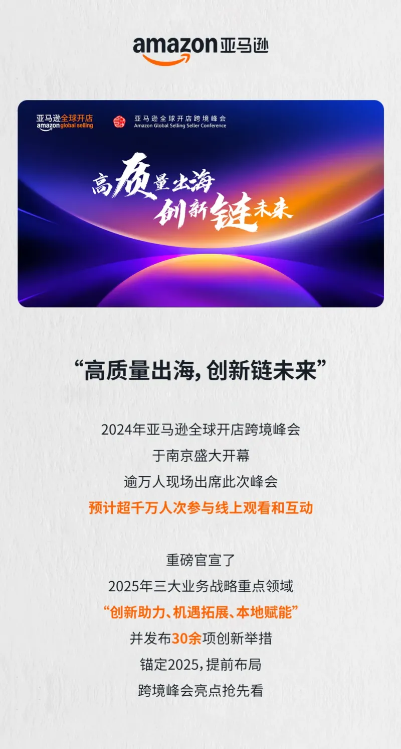 12月10日消息,2024年亞馬遜全球開店跨境峰會日前舉辦,亞馬遜回顧了過去一年中國企業在亞馬遜上所取得的進展,并圍繞2025年業務戰略的三大重點領域——創新助力、機遇拓展、本地賦能,發布了30余項新舉措。