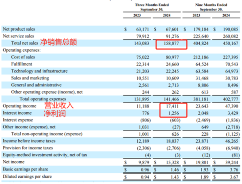 亞馬遜2024年第三季度業績報表 圖源:亞馬遜