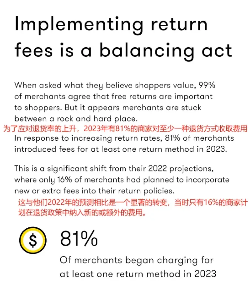 為了減輕退貨所帶來的負面影響,不少零售商正盡其所能控制退貨率。Happy Returns指出,2023年,有81%的美國零售商推出了更嚴格的退貨政策,包括縮短退貨期限并收取退貨或補貨費。
