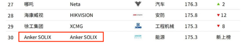 最近,安克押注的新品牌Anker SOLIX登上《BrandOS 2024Q3 Top30工業制造類出海品牌社媒影響力榜單》,該榜由營銷云數據庫OneSight發布,統計結果基于品牌在各大社交媒體平臺上的運營狀況。