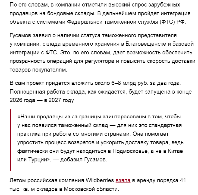 Ozon Global首席執行官Stepan Gusamov指出,海外賣家對保稅倉庫的需求顯著增加,尤其是對簡化退貨和提升物流效率的需求強烈。該項目將在未來一年內完成設施建設,總投資額將在兩年內達到60-80億盧布。