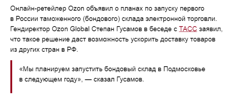 Ozon計劃推出俄羅斯首個海關保稅電商倉庫