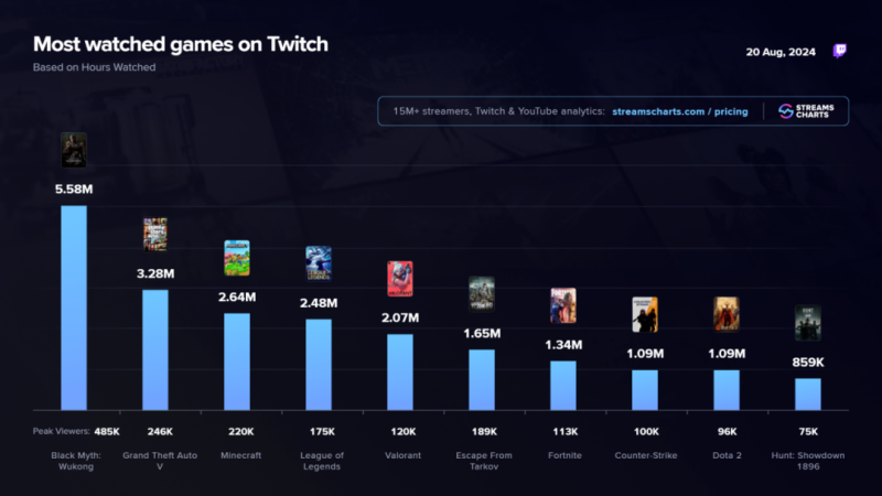 《黑神話:悟空》游戲直播大火 圖源:Streams Charts