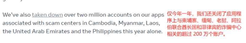 數據顯示,僅2024年一年,Meta就已刪除了來自柬埔寨、緬甸和菲律賓等國的200多萬個與詐騙有關的賬戶,同時還在印度與政府機構合作,提高公眾對網絡欺詐的認識。