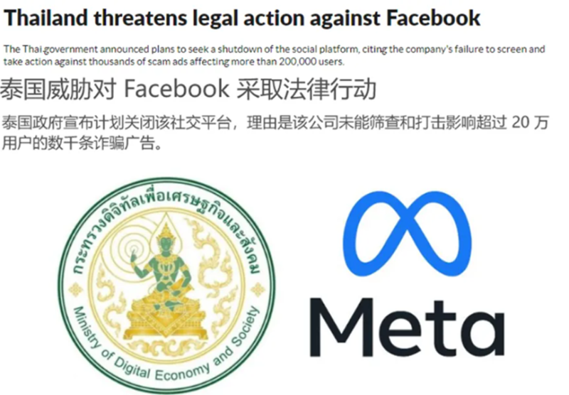 去年8月份,Meta旗下社交媒體平臺Facebook就因為涉嫌存在虛假廣告、虛假宣傳等網絡欺詐行為,而被泰國相關監管部門處以嚴重警告。對此,泰國數字經濟和社會部部長Chaiwut Thanakamanusorn表示:“我們要求法院暫停Facebook的服務,以確保該平臺不再被用于欺騙公眾?!痹谡邏毫ο?,Meta也不得不主動配合泰國政府的工作,出手打擊網絡詐騙。