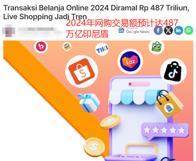 2024年印尼電商交易額將達487萬億印尼盾 圖源:detik finance
