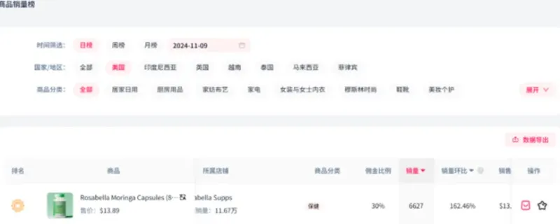 辣木膠囊沖上TikTok熱銷榜榜首 圖源:FastMoss