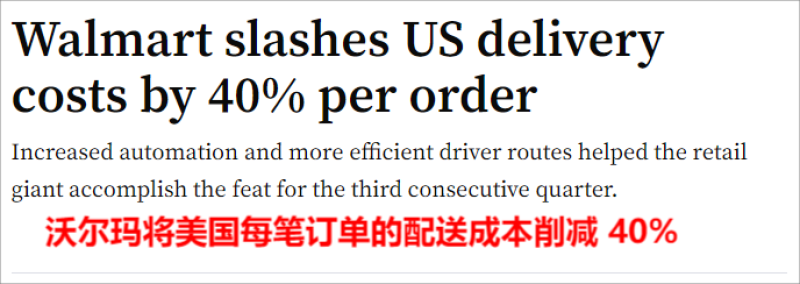 沃爾瑪送貨成本下降 圖源:RETAIL DIVE