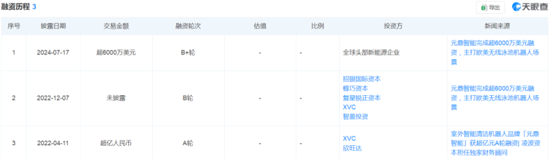 優秀的市場表現讓資本市場看到了閃閃發光的Aiper,于是越來越多的資本開始熱捧這一當紅品牌。天眼查信息顯示,在2022年的4月和12月,Aiper分別完成了超億元人民幣的A輪融資和交易金額未披露的B輪融資;2024年7月,Aiper已經完成B+輪融資,交易金額超過6000萬美金。