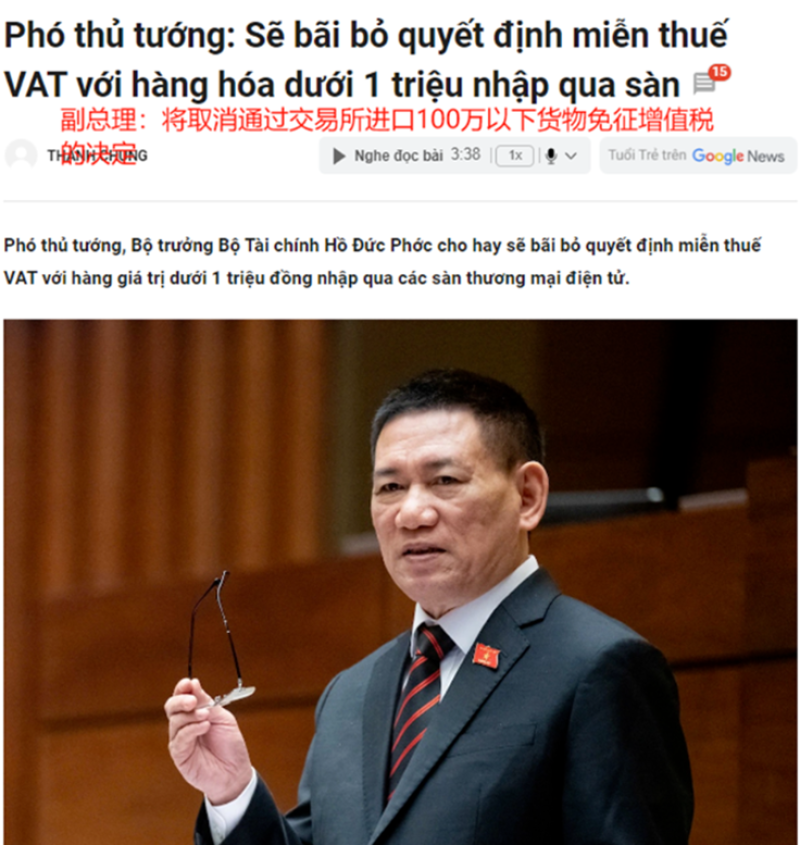 越南宣布取消低價(jià)進(jìn)口商品免稅政策 圖源:tuoitre