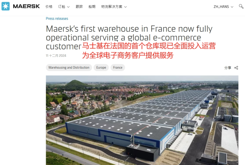 馬士基法國首個倉庫投入運營 圖源:maersk
