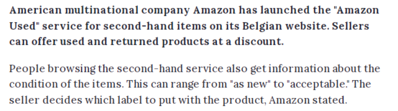 12月19日消息,亞馬遜在比利時推出“Amazon Used”二手商品服務,允許賣家以折扣價出售二手商品和退貨商品。比利時的消費者現在可以在瀏覽商品時,查看關于二手商品狀況的詳細信息,商品狀況包括“全新(New)”“像新的一樣(Like New)”“非常好(Very Good)”“良好(Good)”或“可接受(Acceptable)”,具體信息由賣家決定。