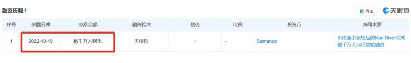 HAN RIVER獲得天使輪融資 圖源:天眼查