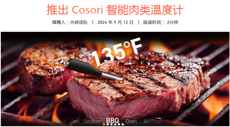 推出智能肉類溫度計 圖源:Cosori品牌官網
