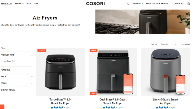 空氣炸鍋系列產品 圖源:Cosori品牌官網
