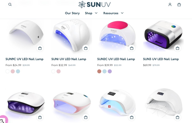 隸屬于深圳鈺創合成光電技術有限公司的SUNUV便是美甲類目賣家的一大尖子生代表,成立于2012年,是國內UVLED行業的頭部廠商之一,占據了國內80%的美甲燈市場。而后從內貿代加工轉向外貿自主品牌,一年時間就占據了全球40%的美甲燈市場,年出貨量高達400萬臺。