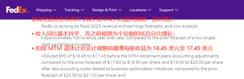 FedEx下調(diào)2025財(cái)年全年業(yè)績預(yù)期 圖源:FedEx