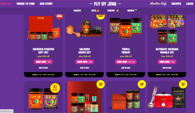 最開始,Fly By Jing通過獨立站(DTC模式)銷售產品,直接觸達消費者,獨立站的用戶體驗以故事驅動,從品牌歷史到食材來源,全面展示產品價值。這種模式幫助Fly By Jing在初期迅速收獲了一批忠實用戶。與此同時,品牌還與Whole Foods、Target等美國主流零售商合作,將產品帶入線下市場。這種線上線下結合的策略,使它覆蓋了更多消費場景。