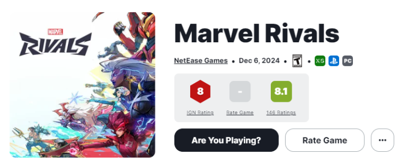 值得一提的是,在游戲網站IGN上,《漫威爭鋒》的評分達到了8分,用戶評論達8.1分,進一步驗證了這款游戲在海外市場的爆火實況。