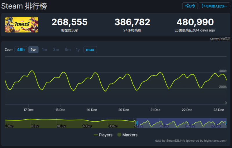 《漫威爭鋒》實時玩家數據 圖源:steamdb.info