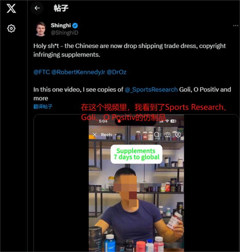 賣家出售假冒保健產(chǎn)品 圖源:X