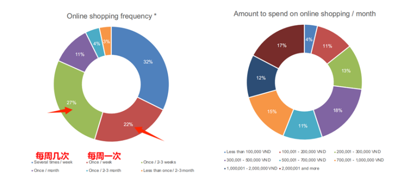 根據越南市場研究公司Q&Me今年9月公布的《2024年越南電商趨勢報告》,過去一年越南消費者的網購參與度有了明顯的提升。報告數據顯示,32%的受訪者每周都會網購多次;22%的受訪消費者每周都會在網上購物一次;將近30%的消費者每兩三周就會網購一次。