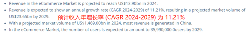 不僅如此,未來越南電商市場還將繼續增長。根據Statista提供的數據,未來5年越南電商市場的復合年增長率預計為11.21%,到2029年時,這一市場的規模將會上升到一個新高峰,其電商用戶數量將達到3599萬,電商用戶滲透率也將從2024年的31%增長到35.9%。