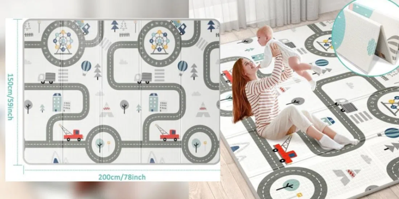 從外觀來看,這款游戲墊尺寸是79 X 59 英寸,表面印有道路、熱氣球、摩天輪和卡車圖形等圖案,整體呈現灰白色。自去年9月以來,這款產品已經在加拿大售出了1295件。