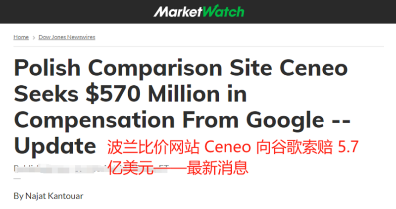 Ceneo起訴谷歌并索賠5.7億美金 圖源:Market Watch