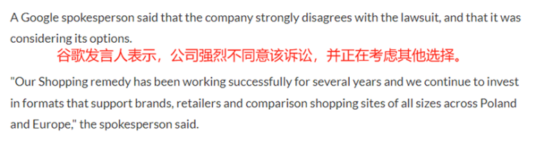 針對(duì)這一訴訟以及超5億美元的高額索賠,谷歌方面自然是強(qiáng)烈不同意,該平臺(tái)相關(guān)發(fā)言人指出:“我們的購(gòu)物解決方案多年來(lái)一直成功運(yùn)行,我們將繼續(xù)投資于支持波蘭和歐洲各種規(guī)模的品牌、零售商和比較購(gòu)物網(wǎng)站的形式。”