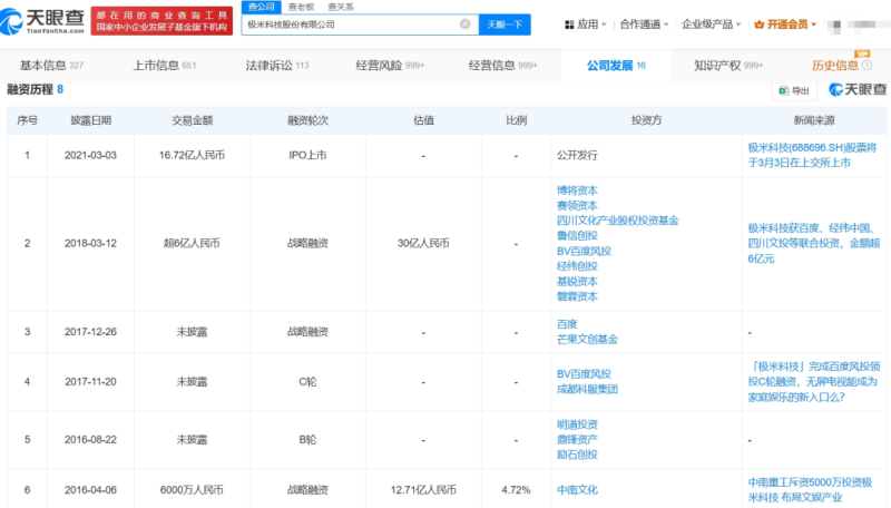 2021年極米上市 圖源:天眼查