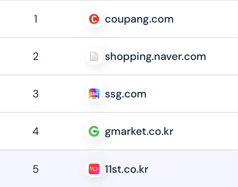 根據(jù)網(wǎng)站分析平臺SimilarWeb數(shù)據(jù),截至今年11月,Coupang依然是韓國最受歡迎的電商平臺,其次是Naver。