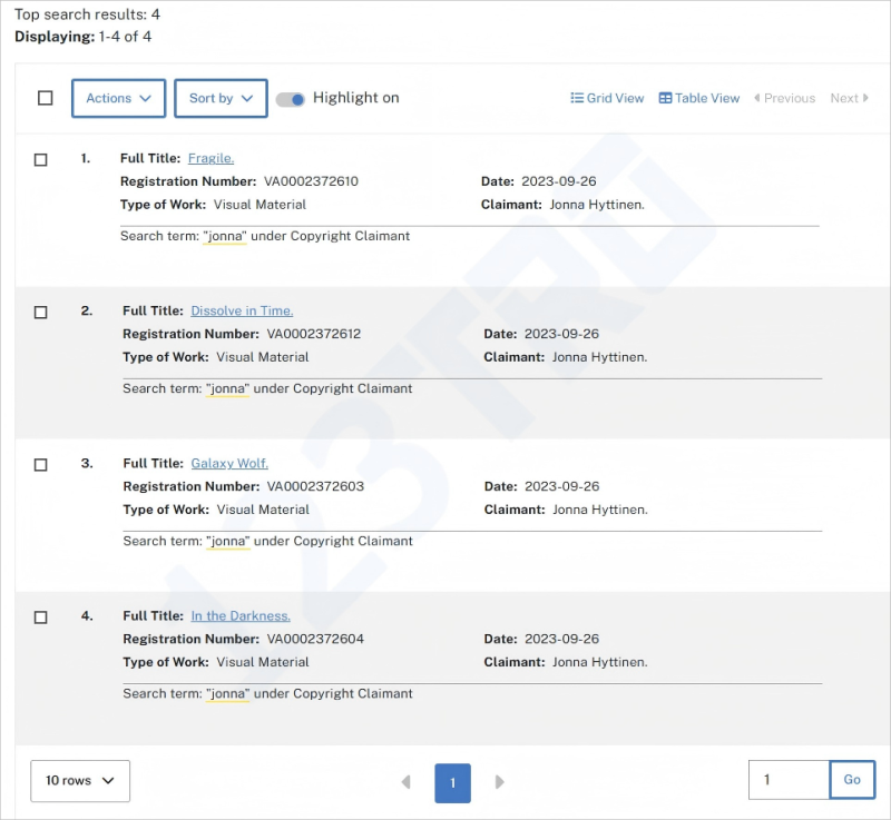 Hyttinen是一名藝術(shù)家,其作品通常以動物、自然和神話世界為主題,名下?lián)碛?條版權(quán)信息。此次她起訴33名賣家侵權(quán)其動物帆布版畫作品,案件號為24-cv-11083,涉及亞馬遜、eBay、Redbubble等多個平臺。